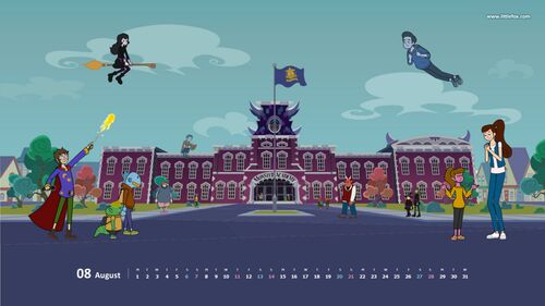 2016年8月の壁紙とデスクトップカレンダーのテーマ童話は、Monster Academyです。 Monster Academyはモンスターたちが主人公のちょっとかわったストーリーです。 Monster Academyに転校してきた幽霊のベンは、新しい学校がとても気に入ります。 というのも、…